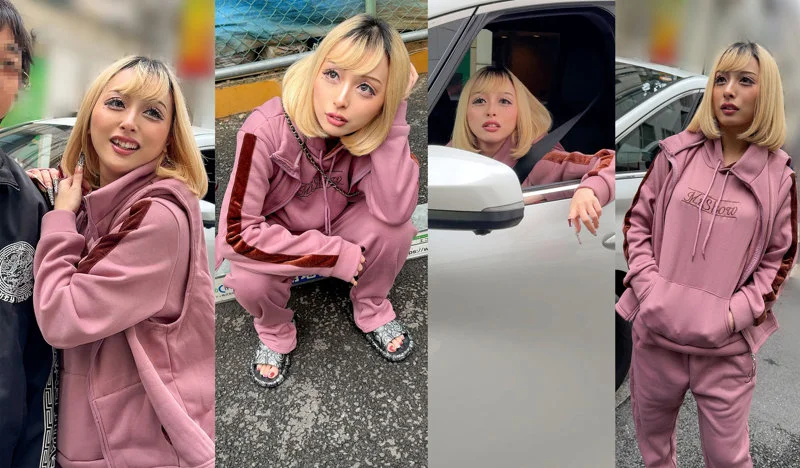 SNSで話題!?のデカい車。その助手席でイキりまくるヤンキー黒ギャル『らんちゅー』。金髪、ド派手ネイル、ジャージ、サンダル。正直、関わりたくないタイプ。